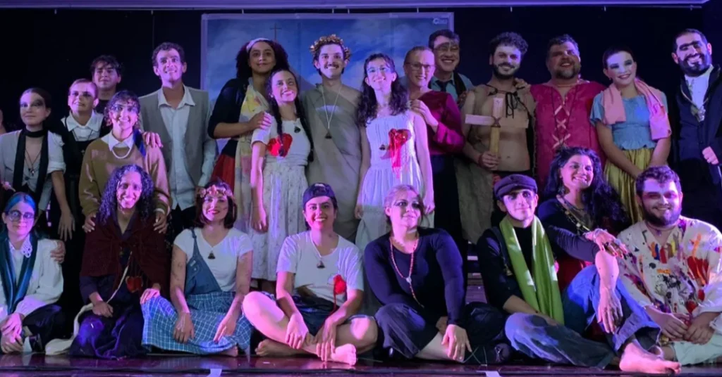O elenco, formado por 27 atores e atrizes, deu vida aos personagens com emoção e intensidade. Subiram ao palco: Aládia Buralli, Aline Marques, Ana Luiza Rafaeli, Ana Paula Grossi, Analice Borges, Aparecida Borges, Edgar Augusto Fonseca, Elena Novas, Felipe Ramiro, Gabriel Vilela, Gabrielli Negri, Giovana Placoná, Jéssica Dias, Karol Araujo, Laura Gabriela Barbosa, Luís Carlos Negri, Luís Guilherme Burza, Luísa Soares, Maria Vitória Domiciano, Miriam Martins, Murilo de Sousa, Nicole Franceli, Sueli Franceli, William Ceccon e William Piffer.